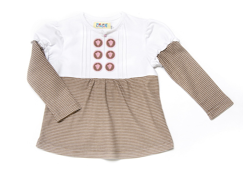 В полоску, с длин. рукавами, 2 материала: кулирка в полоску и кулирка белая, 2 цвета полоски: бежевый, розовый