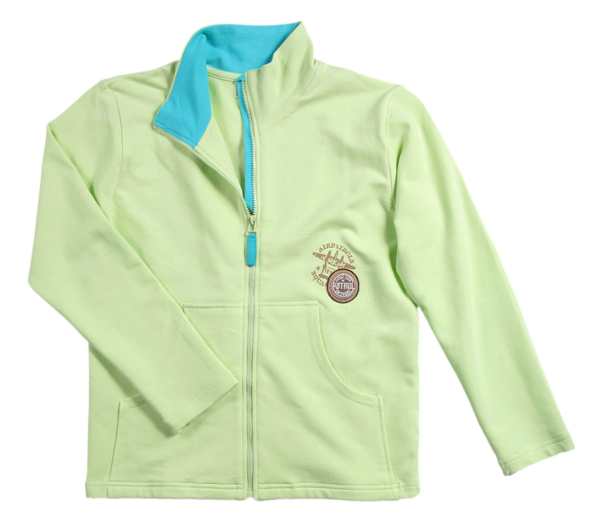 Футер-стрейч, длинный рукав, на молнии, 2 цвета: бирюзовый, зелёный