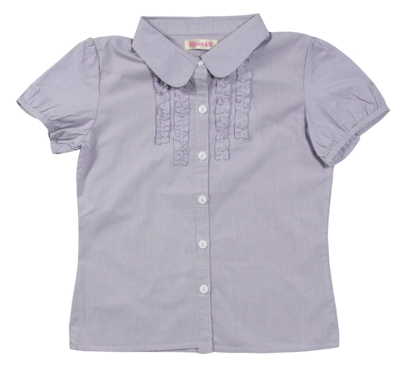 Материал в клеточку, на пуговицах, короткий рукав, 2 цвета: розовый, сиреневый