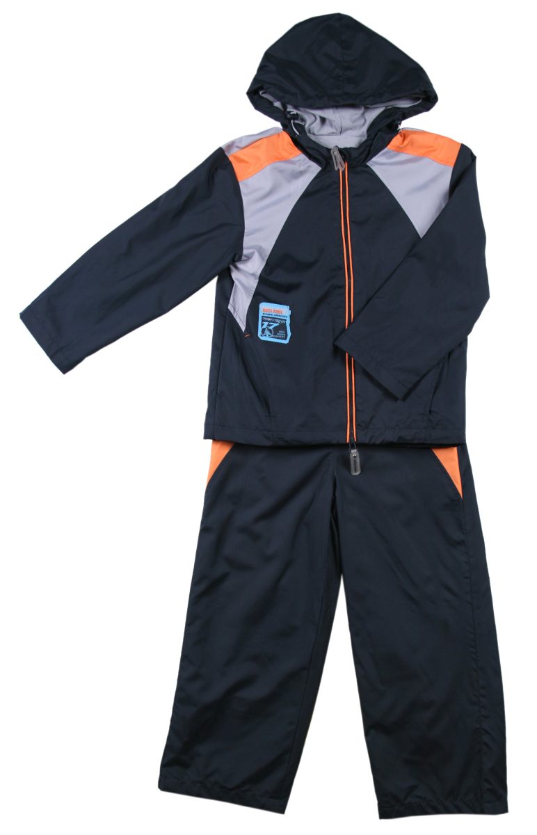 Куртка + брюки, капюшон, цвет: тёмно-синий с оранжевыми и голубыми вставками