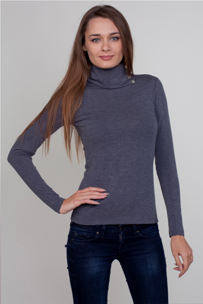 Модный приталенный гольф с высоким воротником.