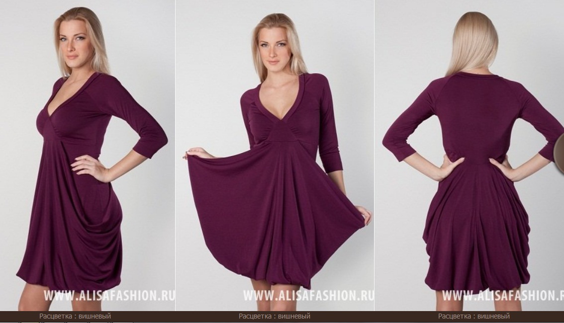 Нарядное платье из трикотажного полотна вишневого оттенка.